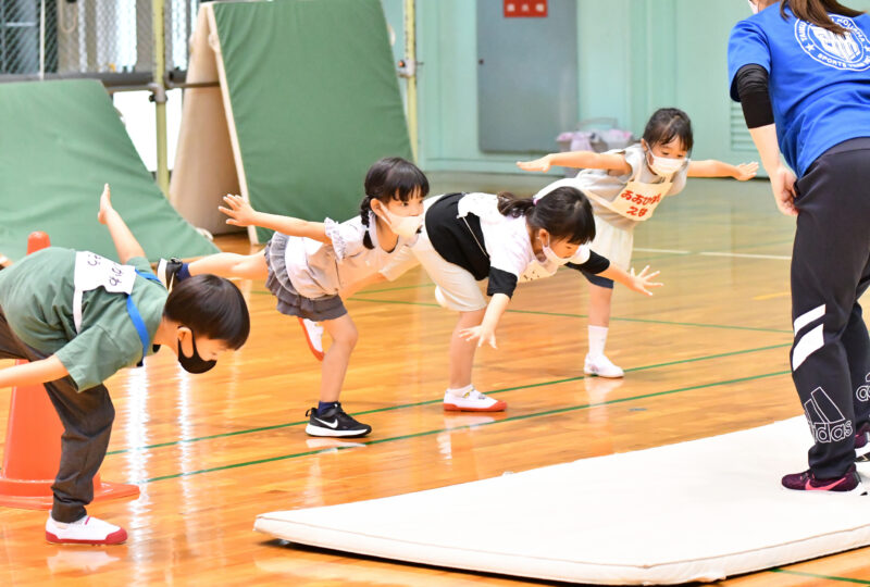 | 準備物 | 動きやすい服装(Gパン・スカートは不可) 屋内専用シューズ 着替え・タオル・水筒など水分補給できるもの お名前のゼッケン(安全ピンは使用不可) |