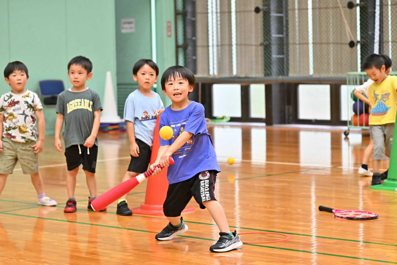 ドッジボール・タッチラグビー・サッカー・テニスなど、しっかりと練習しルールを学びながら行うのでボール競技が少し苦手なお子様も安心してご参加いただけます。