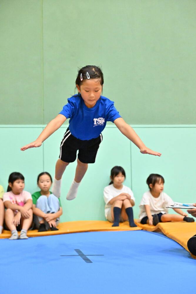 基本メニューはトランポリン・マット運動・跳び箱・鉄棒を指導します。